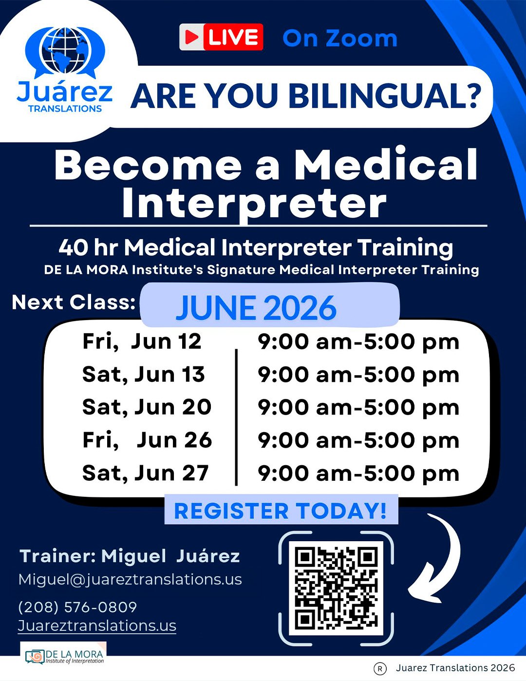 Our comprehensive 40-Hour Medical Interpreter Training prepares bilingual individuals to work as professional medical interpreters in healthcare settings. This program is your essential first step toward national certification and a rewarding career in language access.